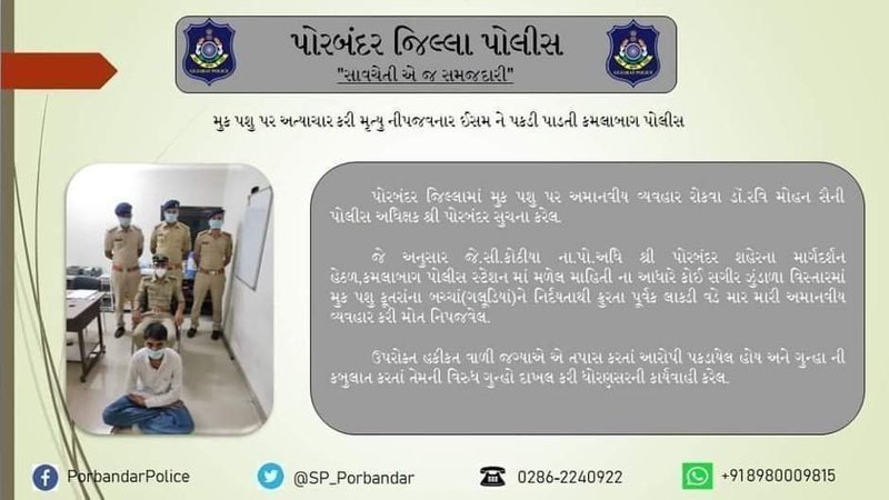 A puppy was mercilessly beaten to death in front of his mother by a barbaric man in Porbandar in Gujarat which also happens to be the birth place of Mahatma Gandhi. An FIR against the culprit was made by Akash Ramilaben Chavda a founder of an animal welfare organization named Darshana Animal Welfare Foundation which he started three years ago. He is barely 25 years old but he has build two hospitals too for the animaks with ICU facility.