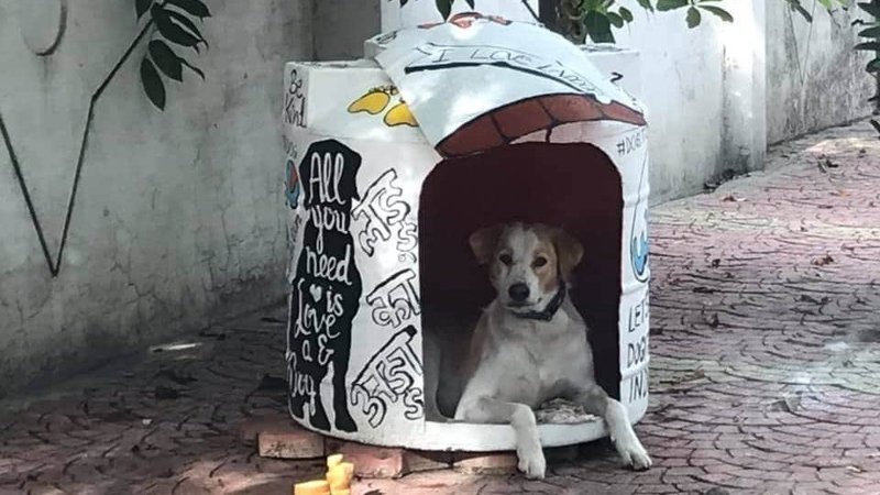 Dogitization campaign being run by Vandana Jain in the city of Indore in Madhya Pradesh is consistently making efforts to change the mind set of the people towards the man's best friend. Recently it came out with an innovative idea of making a dog house (pic in the post) with a discarded water tank (syntax tank). The unused water tanks often remain as a piece of garbage but once painted and decorated the same garbage can become a cozy home for our furry friends. It has enough space inside for the dog to sit comfortably and it also protects the dog from extreme heat, cold and rain. Not just that according to Vandana a dog who is comfortable and secure will never bite anybody. Hence food, water and shelter minimises the risk of dog biting. To watch the beautiful house and the benefits it has to the dog and the society kindly go on the link below: