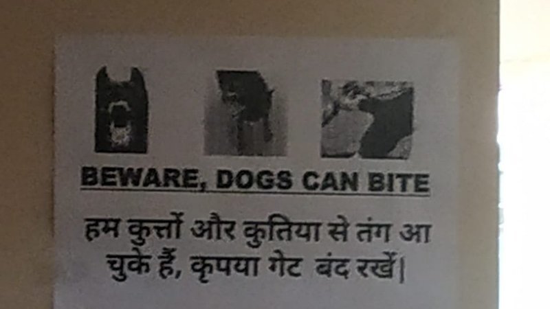 The same dirty and filthy man has put obnoxious posters which says " Beware dogs may bite, we are fed up of dogs and a bitch, kindly keep the gates locked" (pic in the post). This miserable man is not only instigating people against the dogs by spreading rumours that the dogs may bite but also openly abusing Swati and calling her a bitch.