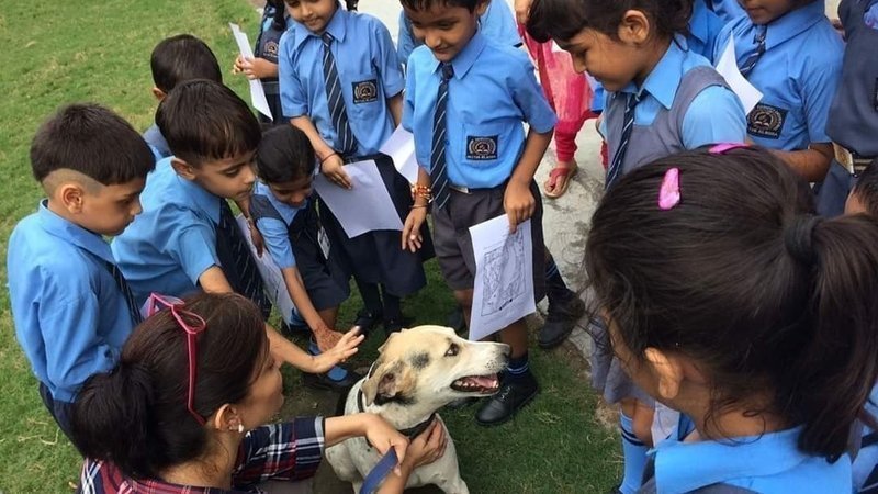 Stray Relief Animal Welfare (STRAW) is a Delhi based organization which was started by Vasanthi and Dinesh Kumar few years back. The growing cruelty towards street animals forced the husband wife duo to quit their respective professions and start a full time animal welfare NGO. Unlike other NGOs who focus on animal rescue, their aim is to inculcate empathy and compassion in the young minds of India. Initially they went from school to school teaching students empathy towards animals (pic in the post) but later they joined hands with CBSE (Central Board of Secondary Education) and two state boards: The State Educational Research Training, Karnataka and State Council of Educational Research and Training, Delhi where they have asked them to introduce compassionate classrooms as a part of their syllabus.