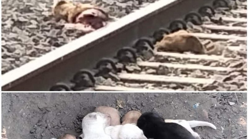 A female dog who delivered seven pups just three days back was run over by a train on railway tracks (pic in the post). Few have got adopted and some are still left. They are at an NGO Jeev Ashraya in Lucknow, Uttar Pradesh. The mother had gone on railway tracks in search of food. She needed food herself to feed her pups.