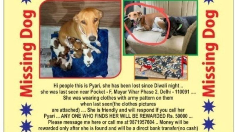 Pyari is a two year old female dog who got lost from East Delhi. Her caregiver Akshay (M-91 98719 57604) is doing everything possible to find her. He has even announced a prize money for her (pic in the post).