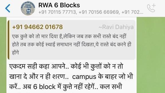 On 26th December 2020 a dog named Kaamo was mercilessly beaten to death by a mob which was driven by the RWA of Kundli, TDI city, Sonipat in Haryana. The RWA claimed that the dog was rabid as it had bitten quite a few people and so they had to beat the dog to death. They didn't only stop to that. The human monsters threw out all the other dogs residing in the society with the help of the security guards. For the video and all the WhatsApp messages between the the residents and the RWA members kindly go on the following link: