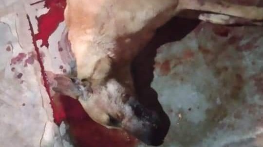 Gujarat is yet again in news for human brutality over dogs. Very often we see and hear men beating dogs with sticks and stones but this time two stray dogs have been attacked by a human monster by a knife. One dog has died (pic in the post) and the other is undergoing treatment in the hospital. The culprit and his family are absconding