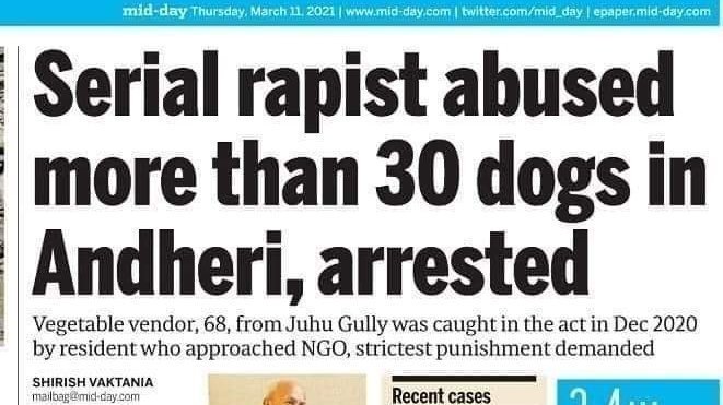 A man in Mumbai has been arrested for sexually abusing more than 40 dogs and cats. He has been caught red handed doing this atrocious act to a female dog. To watch this monster and his unpardonable crime kindly go on the link below: