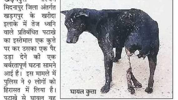 One such incident took place in Khadagpur. Few Ravanas in the guise of humans tied a bomb ( fire cracker) to one the legs of a black dog . The dog lost his leg instantly as the bomb bursted. He also sustained injury in one of his eyes and other body parts (Pic in the post).