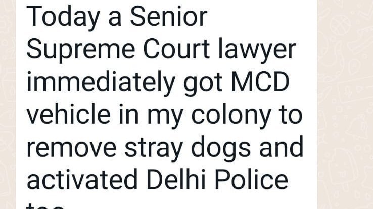 A message on various whataspp group has also gone viral which says that a senior Supreme Court lawyer has asked the Municipal corporation to pick up all the dogs from the colony (Pic in the post). Well if the message is true then this is against dog rules 2001. No one has the authority to relocate stray dogs or pick them except for being sterilized.