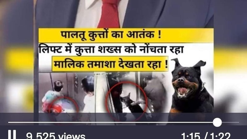 This incident has become the headline of every news channel in India. The dog, it's breed and its owner are being condemned. Some channels are still running the news as this means more TRP for their channel. One of the most watched television channels in India have come out with the following caption "Terror of dogs, Dog kept tearing a person in a lift and the owner kept watching the entertainment in silence" (Pic in the post).