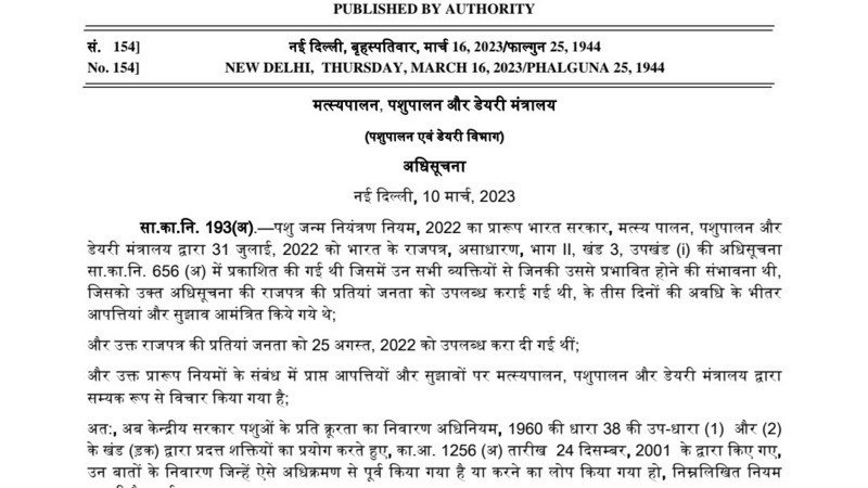 The Ministry of Fisheries, Animal Husbandry & Dairying on 10th March 2023 has notified the revised Animal Birth Control Program 2023