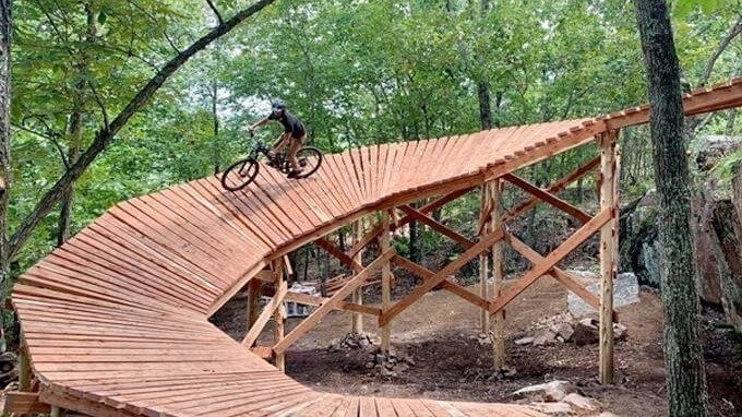 We are all crossing our fingers that some progressive Mt Bike trail options will be incorporated into the RTMP, maybe even a wooden feature or two. This Corkscrew at Shepard Mountain Bike Park, in Ironton Missouri would be pretty rad.