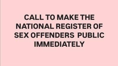 While we acknowledge the government's concerns about balancing privacy laws and the need for transparency, we demand that the Sex Offender Register be made accessible to the public as soon as possible. The government has stated that they are addressing privacy concerns and working on legislation to ensure a lawful release of the register. However, it is critical that this process is expedited. Public safety must come first.