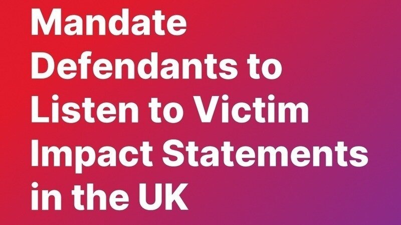 In the United Kingdom, victim impact statements are a crucial part of the judicial process. They convey the physical, financial, and emotional effects of crime upon the victims. However, currently, there is not a mandatory requirement for defendants to listen to these statements. This often leads to victims feeling unheard and their distress overlooked. Victim Support, a leading UK charity for victims of crime, has repeatedly stressed the importance of these statements in helping victims recover and in ensuring justice. By requiring defendants to listen to the impact statements, we can assure that the victim's voice is an integral part of the process. Acknowledging the damage caused not only serves justice but also promotes empathy, which is crucial for reducing reoffending rates. We urge the UK legal system to make it compulsory for the defendants to listen to the victim impact statements. Your signature can make a difference and give a voice to those who have suffered. Please sign this petition.