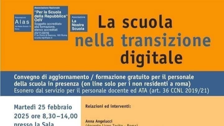 Convegno di aggiornamento / formazione gratuito per il personale della scuola in presenza (on line solo per i non residenti a Roma)