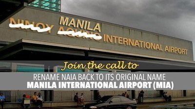 Back in 1987, Manila International Airport (MIA) was renamed to Ninoy Aquino International Airport (NAIA) through Republic Act No. 6639 which was enacted without executive approval on November 27, 1987.