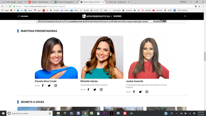 In my continued attempt to bring media coverage to Manny's innocence to help keep the Innocence Project on track. I've reached out to each of the 3 ladies on Primer Impacto. Pamela Conde, Michelle Galvan and Jackie Guerrido. If everyone who reads this update can access their twitter account and send a tweet to each of these ladies as well. That would help grab their attention and we can jump start the media coverage. Thanks so much.