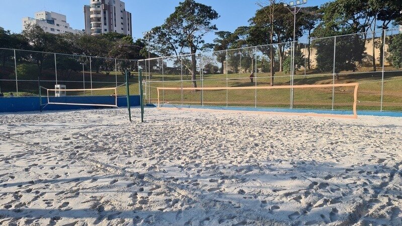 Nós da Comissão, recomendamos a compra de 06 caminhões de areia Jundu (própria para a prática do esporte), o que daria aproximadamente 15cm de profundidade.