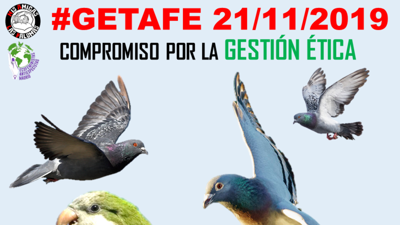 �Hoy todos estos colectivos nos sumamos en esta ACCIÓN para salvar más de 2.000 palomas de Getafe y indefinidas cotorras