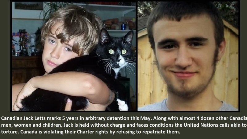 Please sign and share: https://www.change.org/p/i-forgot-what-the-sun-looks-like-free-jack-letts-and-all-canadian-detainees-in-ne-syria Canada must immediately act to free 4 dozen Canadian children – yes, kids! – women, and men left to rot in one of a series of notorious Northeastern Syrian prisons and detention camps called “Guantanamo on the Euphrates.” One of them marks 5 years in arbitrary detention on May 3. Save the Children reports that youngsters they interviewed say their lives are “simply wasting away” with violence and illness a daily risk. A March, 2022 United Nations report described their conditions as meeting the “threshold for torture, cruel, inhuman, and degrading treatment under international law.”