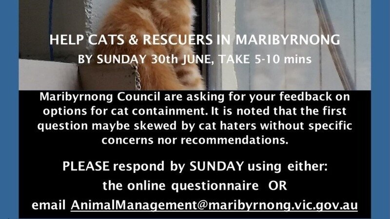 HELP THE CATS & RESCUERS IN MARIBYRNONG – TAKE 5-10 mins TO COMPLETE A SURVEY / EMAIL BY SUNDAY 30th JUNE!