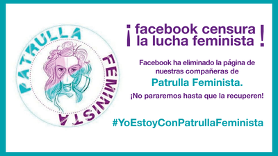 Hoy Facebook ha retirado la página de activismo, difusión y divulgación Patrulla Feminista. Una página administrada con mucho esfuerzo por varias mujeres que dedican el poco tiempo libre que tienen a elaborar posts, imágenes y artículos y a difundir noticias relacionadas con la lucha por la liberación de la mujer. Una página que en menos de un año y sin ningún tipo de publicidad ni promoción ya tenía más de 15.000 seguidoras.