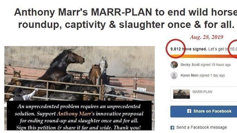 Actualización de la peticiónAnthony Marr's MARR-PLAN to end wild horse roundup, captivity & slaughter once & for all.Just 188 more signatures to target (10,000) by deadline (Aug. 31). Are we going to make it?