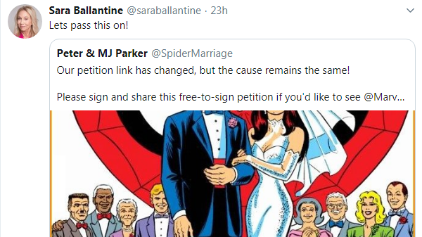 To those who have signed this petition so far, thank you all so much for your signatures and your support. Please share the link to this petition on Twitter, Tumblr, Facebook, and any other website you think it'll help. The more awareness we get for our cause and the more signatures we collect, the more likely our dream of seeing Marvel Comics undo the events of "One More Day" and permanently bring the marriage of Peter and Mary Jane Watson-Parker back into continuity in the monthly Spider-Man comics could become a reality! I hope you all are having a great weekend and I hope you all have a wonderful night!