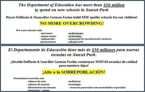 ¡Alcalde DeBlasio & Canciller Carmen Fariña construyan NUEVAS escuelas de calidad para nuestros hijos!
