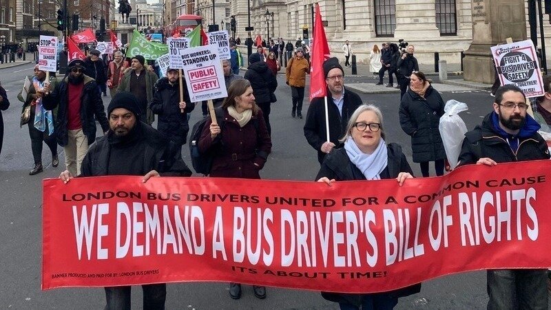 At midday on Wednesday 29 January, hundreds of London Bus Drivers brought traffic to halt in the heart of London. The protest was part of an extended campaign by London Bus Drivers to compel the Mayor of London—in his capacity as TfL Chair—to incorporate a "Bill of Rights" in Transport for London's Framework Bus Contract that haven't been modified since 1 January 2016, months before London's "Vision Zero" Mayor was elected.