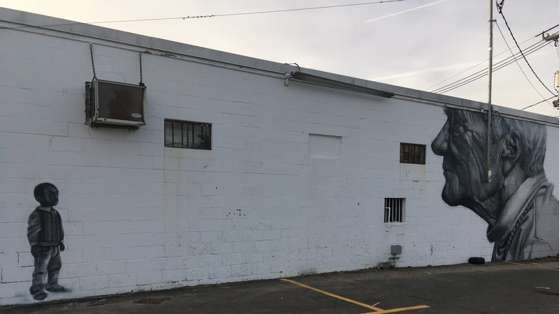 Beyond Walls a company based in Lynn, MA has done beautiful work in Downtown Lynn with amazing large scale murals. Most of the themes on the walls involve people of color that represent the neighborhood. When Beyond walls and Peabodys Main Streets along with Artist Vise1 came to South Peabody they put a mural here that does not represent the neighborhood. A big old scary white lady staring down a little black boy ( who looks sad ) does not represent South Peabody at all. In fact this wall promotes division not unity. Hip Hop and Graffiti is based on peace, love, unity, and having fun. This artist clearly came to peabody and painting something that has nothing to do with the south peabody experience. Playing sports , the rope swing , land and sea , riding BMX bikes, this is what comes to mind when I think of South Peabody, not a big white lady looking over at a lost black boy.