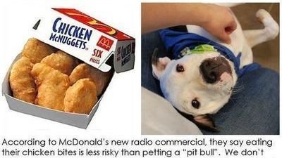 Why in the world would your company stoop so low as to compare your product to a pit bull? We the people, are outraged and appalled that you would do such a thing. In the past few years pit bulls and for that matter all bully breeds have gotten a bad rap from the news media. Whether your company understands it or not it is not the breed it is the deed! These dogs are warm loving and loyal pets. The only thing that makes them mean or aggressive is the idiot owners who raise them to be fighters! McDonald's you need to stop trying to stereotype the Pit Bulls! Whom ever decided that it was okay to do this type of advertising should at the least be fired! Wake up and smell the coffee, don't you think that you have just lost a lot of potential business because of your companies stupidity? Think about this; I found out about your ad from a facebook post! How many of us owners do you think will cross post it? I for one will never ever step foot in another of your stores! Your company owes everyone especially the American Pit Bull's an apology! Here is an idea, why don't you and your top executives go to a bully breed rescue and help or better yet why not also make a substantial donation to help these poor defenseless animals! We will not stop until this injustice is corrected and a public apology is made.
