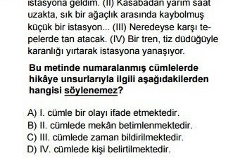 Arkadaşlar burada 4. cümlede tren özne ve trenin nasıl olduğundan bahsediyor, cevaplarda "D" şıkkında kişi belirtilmektedir yazıyo. DOĞRU...