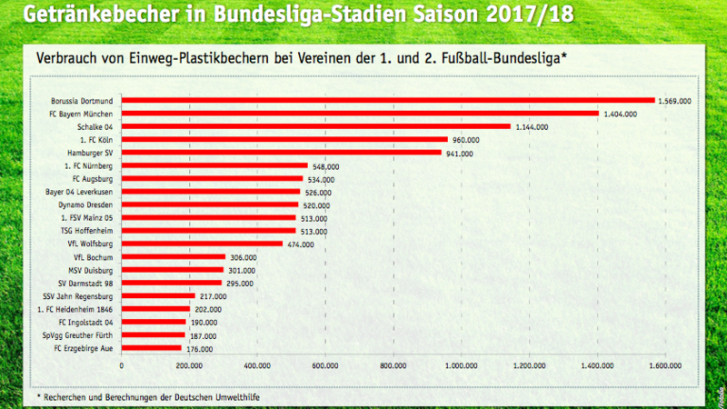 Wiederverwendbare Becher sind der beste Weg, um Abfälle zu vermeiden, sowie Energie und CO2-Emissionen einzusparen. Schon nach dem fünften Gebrauch sind sie umweltfreundlicher als Einwegbecher. Und dass es ohne Probleme möglich ist, zeigen ausgerechnet der Tabellenführer FC Bayern München und der 1. FC Nürnberg: Sie wechseln ab der kommenden Saison auf Mehrwegbecher und zeigen damit, dass bei einigen Vereinen ein Umdenken stattfindet!