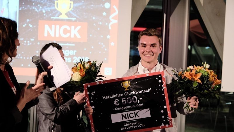 ich möchte heute noch einmal persönlich an Euch wenden und mich bei allen bedanken, die auf Facebook für mich als Changer des Jahres abgestimmt haben! Mit eurer Unterstützung haben wir es geschafft, als beste Petition des vergangenen Jahres ausgezeichnet zu werden, worüber ich mich bei der Preisverleihung gestern in Berlin natürlich unglaublich gefreut habe!