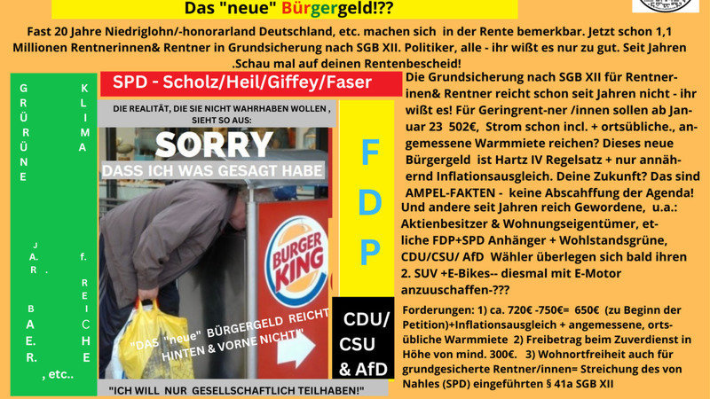 Das sogenannte Bürgergeld reicht für Rentner/innen hinten und vorne nicht!!