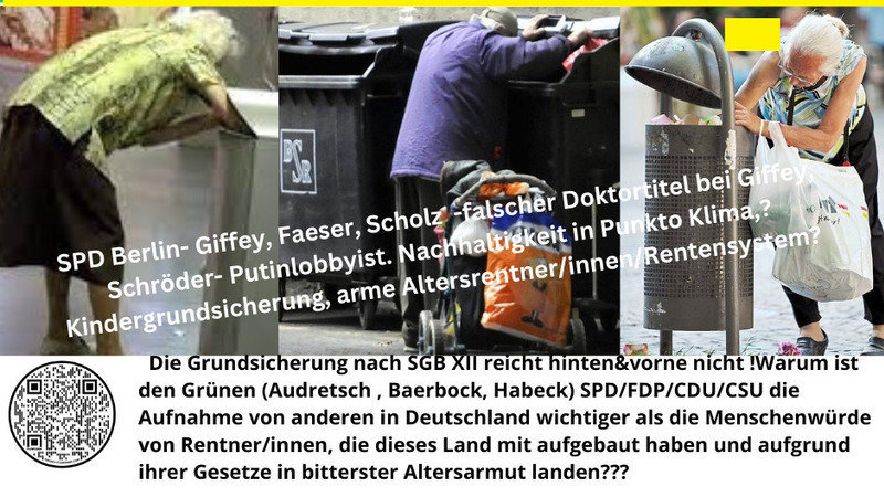 Erstaunen und Wut packt mich, wenn ich sehe wie widerlich erbärmlich diese Ampel Armutsrentner/innen in Deutschland behandelt und wie die Mehrheit der Menshen in diesem Land dies zulässt!