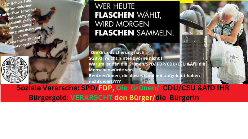 Kein Mensch in Deutschland müsste auf Flaschensammeln oder Tafeln angewiesen sein, wenn dieses Land und insbesondere Politiker/innen sozial denken würden!
