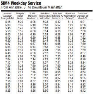 * Rerouting the SIM2 off-peak to travel via Victory Blvd & Richmond Avenue to reach the Staten Island Expressway as opposed to traveling up the West Shore Expressway north of Victory Blvd.