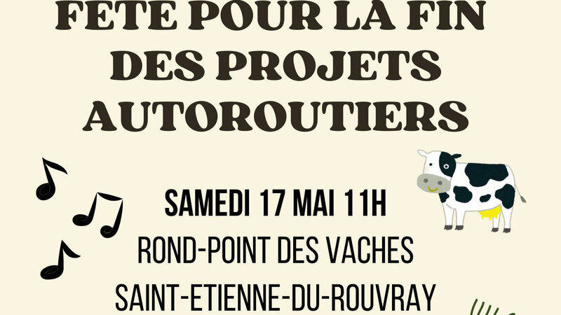 Le samedi 17 mai à 11h le collectif Non à l' A133-A134 organise la Fête de la Fin des projets autoroutiers au Rond Point des Vaches à Saint-Etienne-du-Rouvray.