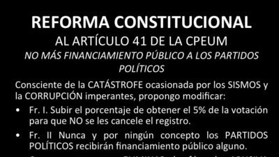 LA REFORMA CONSTITUCIONAL AL ART. 41 NO MAS FINANCIAMIENTO PÚBLICO A PARTIDOS POLÍTICOS.