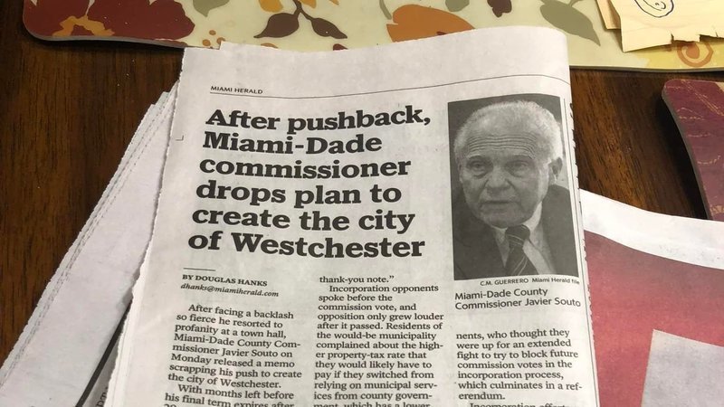Petition updateKeep WESTCHESTER UNINCORPORATED!Miami Herald Coverage-After pushback, Miami-Dade commissioner drops plan to create the city of Westc
