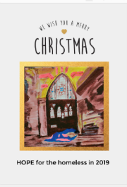 Thank you to everyone who has signed up to support the Hope Centre. It's been a fantastic response. There are Hope Centre Christmas cards - available from the Hope Centre from Thursday. All proceeds will go to the Hope Centre. One card - pictured here - shows a rough sleeper by a council building in Northampton town centre. The other is of a Northamptonshire countryside scene. Both pictures were painted by Hope Centre service users. Enjoy!