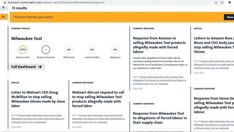 Recently, NGO Business & Human Rights Resources Center noticed my petition and sent inquiry letters to Milwaukee Tool, Amazon, Home Depot, and Walmart.