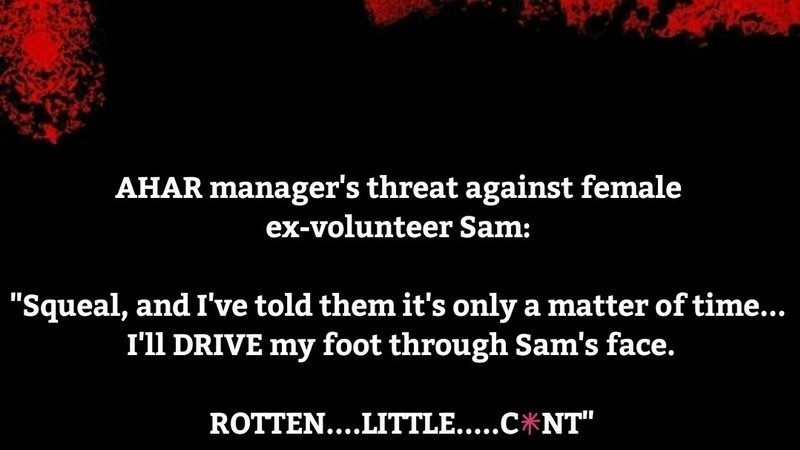 Sharing an audio of threats made by AHAR founder and current manager about Sam - AHAR former horse fosterer - in the hope of silencing her from revealing what she knew on the 'AHAR Exposed' Facebook page.