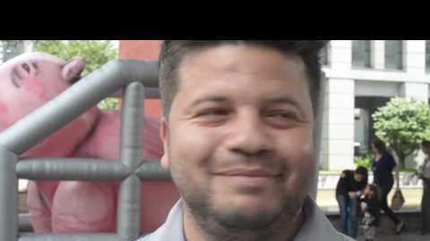 Quanto tempo você conseguiria ficar dentro de uma gaiola do tamanho de seu corpo? O desafio foi proposto a dezenas de pedestres que passavam em frente ao MASP, na avenida Paulista, em São Paulo, para simbolizar o lançamento de nossa campanha que pede que o Brasil proíba o uso das minúsculas celas de gestação, que confinam porcas reprodutoras, cujas carnes dos filhotes abastecem supermercados, restaurantes e açougues no país.