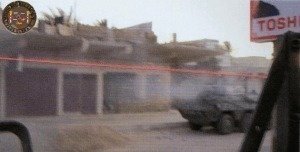 Un poco más adelante, de pronto, aparecen 3 coches enemigos, artillados con ametralladoras, haciendo fuego contra los españoles. Parecían los vehículos de la película “MAD MAX”. La Sección dispara contra ellos pero no consiguen abatirlos y desaparecen por una bocacalle a toda velocidad. El enemigo era valiente y digno de enfrentarse con el Ejército español.
