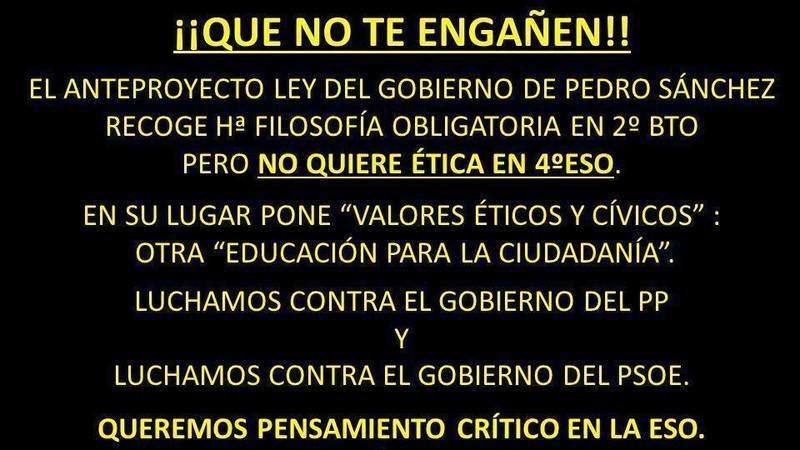 Petition update¡No expulséis a la Filosofía de los colegios! #SalvemoslaFilosofíaQUE NO TE ENGAÑEN. EL GOBIERNO NO QUIERE ÉTICA EN 4º ESO