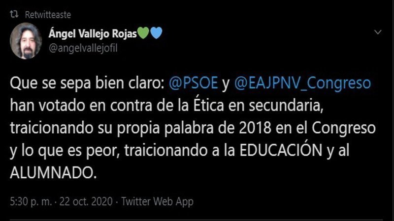 El #PSOE vota en el Congreso en contra de que Ética sea obligatoria con la nueva ley.