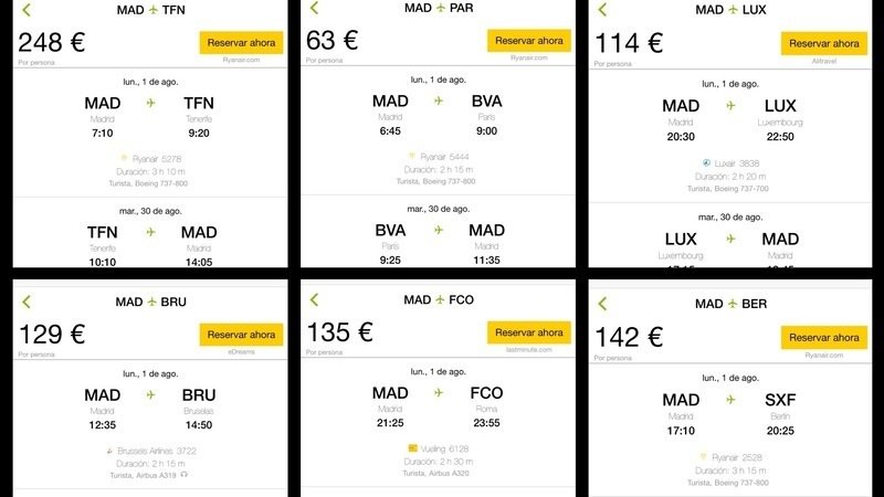 Como me aburro, me he dedicado a mirar cuánto me costaría ir a Tenerife del 1 al 30 de agosto, porque es el mes más propicio para poder viajar por cuestiones laborales... Y luego, por curiosidad, he mirado las mismas fechas para el resto de islas y para algunas de las principales capitales europeas. Este es el resultado: