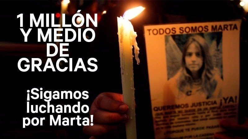 Somos más de 1,5 millones de personas, que seguramente, sin tener las mismas ideologías, sin ser de la misma raza, sin ser del mismo país, hemos sido capaces de juntarnos para pedir justicia por Marta del Castillo...