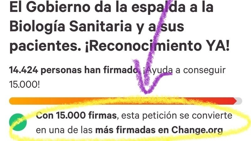 Petition updateEl Gobierno da la espalda a la Biología Sanitaria y a sus pacientes. ¡Reconocimiento YA!¿Nos ayudamos a conseguirlo, compartiendo? GRACIAS DE CORAZÓN